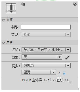 6、建立音乐图层,其音乐拖到舞台上,音乐图层上的帧属性,如图:
