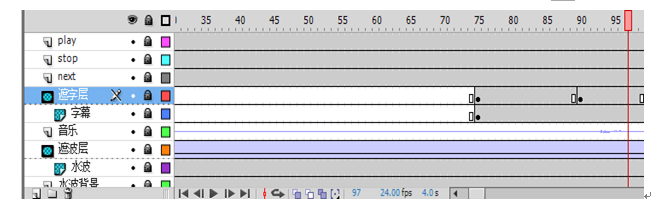 8、建立遮字层,配合音乐,用刷子工具逐一涂抹每一个字,然后将其设置为遮罩层,具体如图: