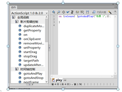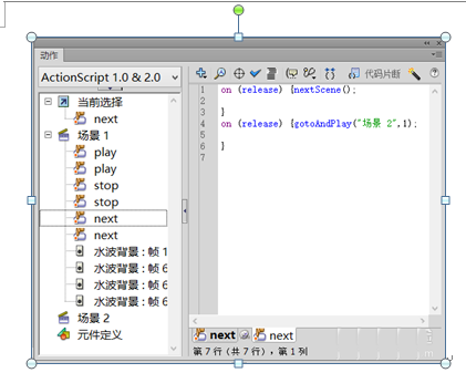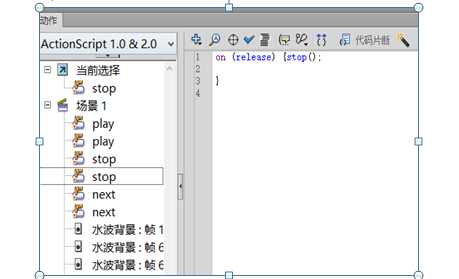 10、分别设置三个按钮上的动作属性和水波背景图层上的首帧和尾帧的动作属性,具体参数如下: