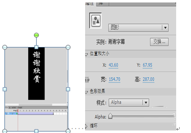11、插入场景 2,创建“谢谢字幕”图形原件,将其拖入图层一第一帧,在第60帧插入关键帧,调教其透明度为0.创建传统补间动画,具体如图: