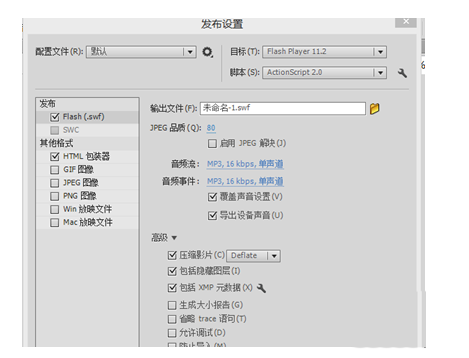 12、设置发布设置,点击发布,完成。发布设置具体参数如图: