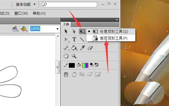 3、填充好后,点击工具栏中的渐变变形工具,如图所示位置。