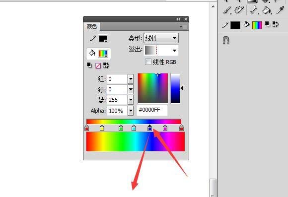 6、按Shift+F9键调出颜色面板,对着底部的渐变色块,按住其中某个不想要的颜色往下拉就可以取消渐变色中的该种颜色,如下面第二个图所示。