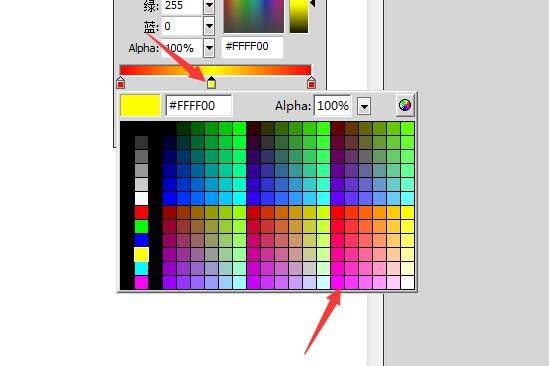 7、对着色块往左或往右拉动,可调整该颜色在渐变色中的位置。双击该色块,下方弹出颜色选择,点击想要的颜色即可更改该色块颜色。