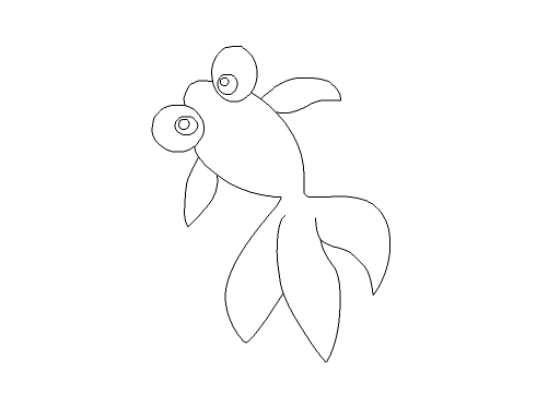 4、在身体的下面再画出小金鱼的尾巴,如图所示: