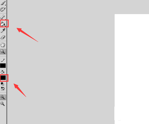 6、在工具箱内找到颜料桶工具,然后设置填充色为黑色,如图所示: