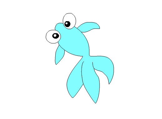7、将小金鱼的眼睛填充为黑色,然后将小金鱼的身体填充为蓝色,这样可爱的小金鱼就画好了,如图所示: