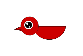 6、画一个三角形,并用选择工具把它变成图中的样子。放在合适的位置作为小鸟的嘴巴。