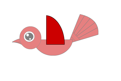 10、放到合适的位置作为小鸟的翅膀,用变形工具将它拉长。
