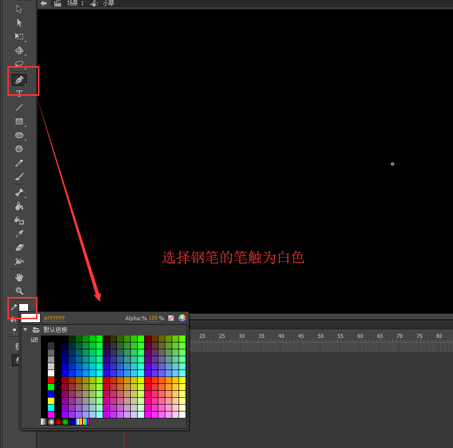 5、选择钢笔工具,然后点开笔触颜色的色块,设置钢笔的笔触颜色为白色颜色,大小为1像素。
