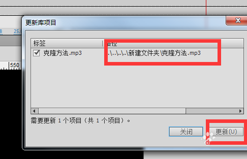 5、在弹出的框里点击更新。那么时间轴上的声音也就替换掉了。