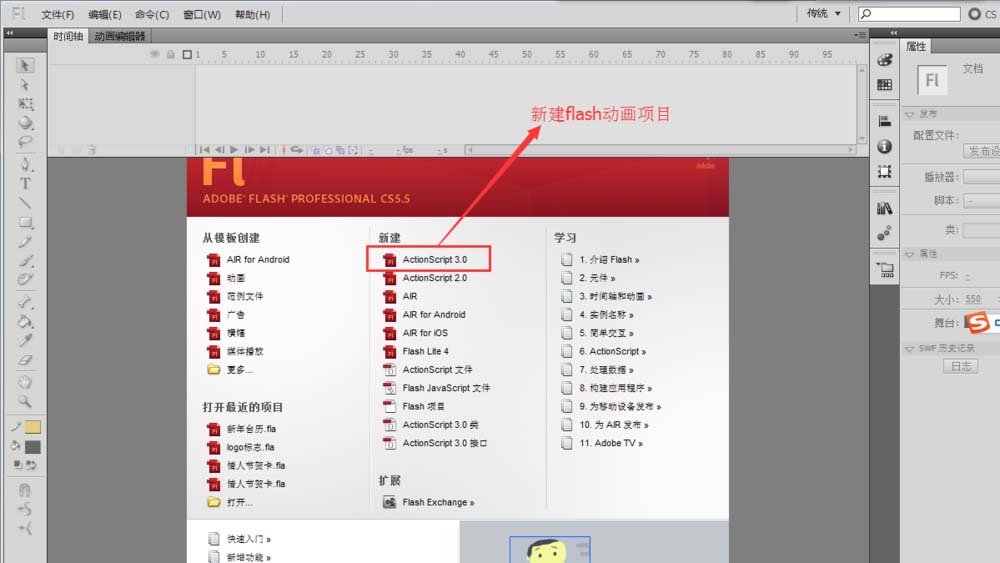 1、打开flash软件,新建一个动画项目。