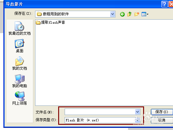 5、会弹出一个导出影片的对话框,我们默认是swf格式的
