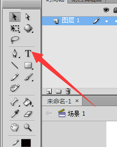 3、在工具栏找到文字工具,就是箭头指的“T”