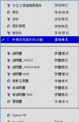 7、点开系列右边的倒三角,里面有各种字体,找到你需要的字体点上去就可以了。