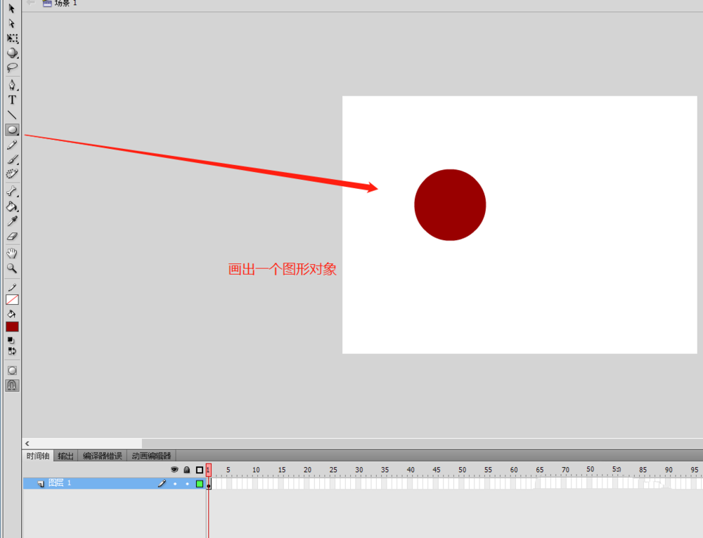 2、新建了flash动画项目之后,我们在flash的舞台上随便使用图形绘制工具绘制一个基本图形出来。