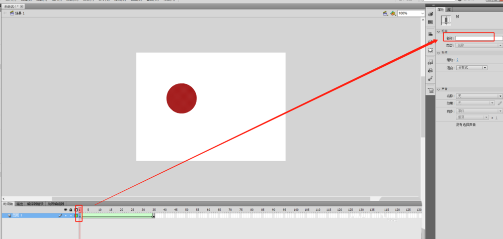 3、然后通过绘制的图形在时间轴中来制作一个简单的补间形状的flash动画。