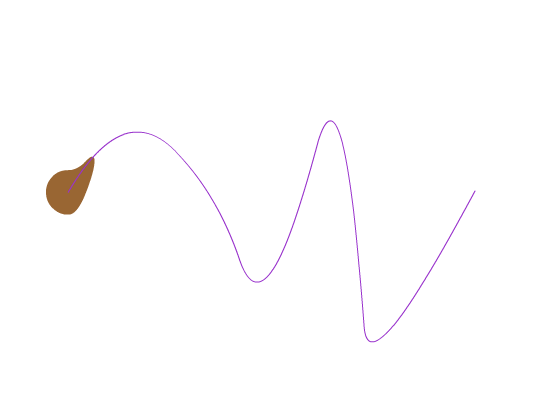 5、如图所示,是没有设置调整到路径的动画效果