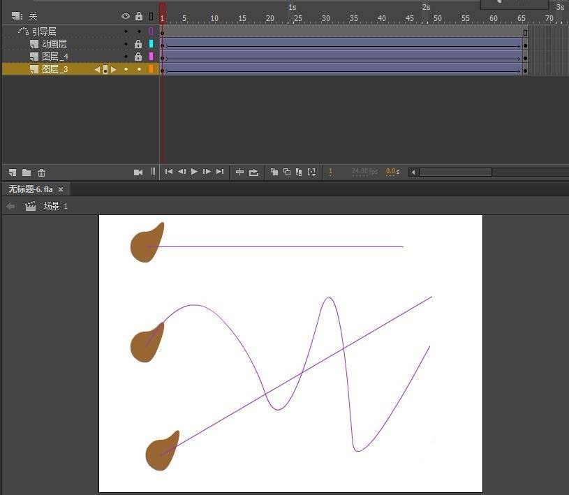 2、动画层必须沿着引导层上的一条线,不管是直线还是曲线,都不能是断开的,才能完整按线移动。