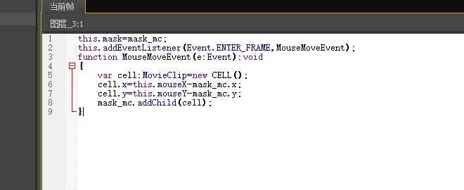 7、接下来设置矩形框的实例名为mask_mc,用作遮罩。这里使用代码创建遮罩层。
