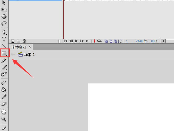 1、打开flash之后,在左侧的工具箱内找到矩形工具,如图所示: