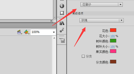 7、选择deco工具之后在右侧属性面板里选择我们需要的花朵,如图所示: