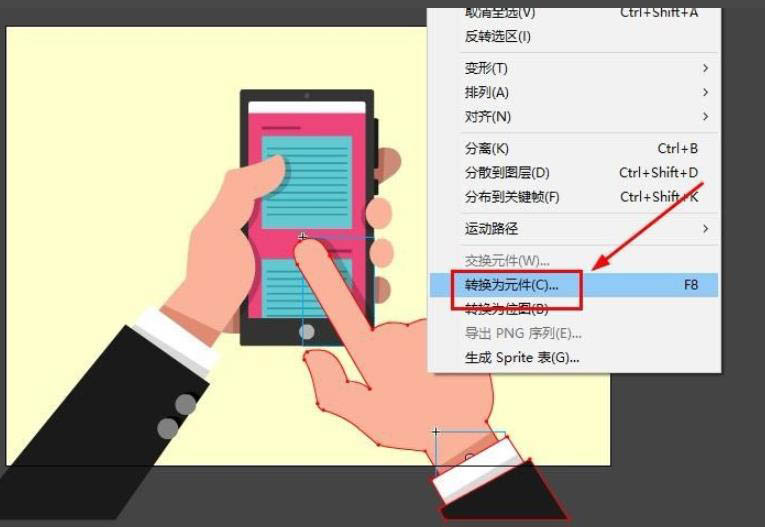 3、将右手转换为元件