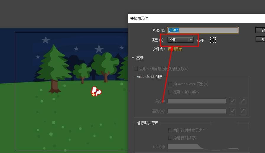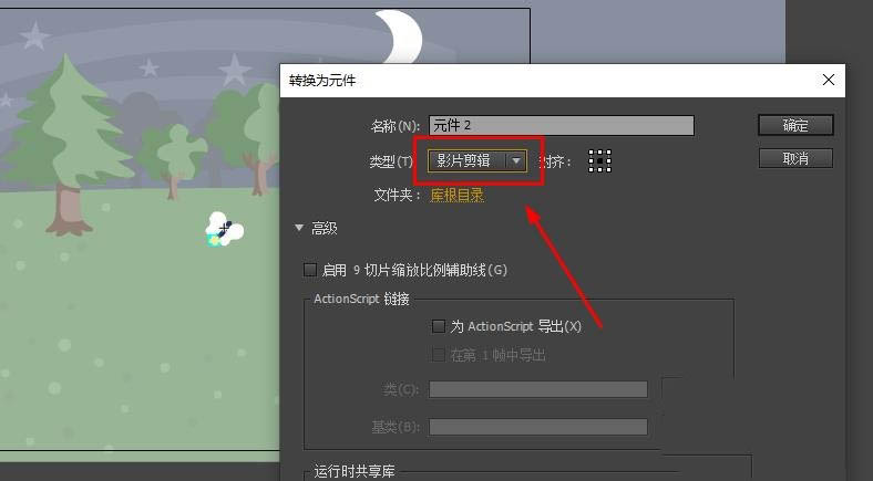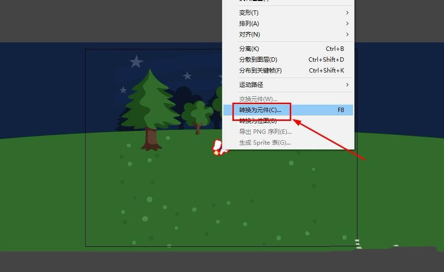 5、双击进入编辑状态,转换萤火虫尾巴部分转换为影片剪辑