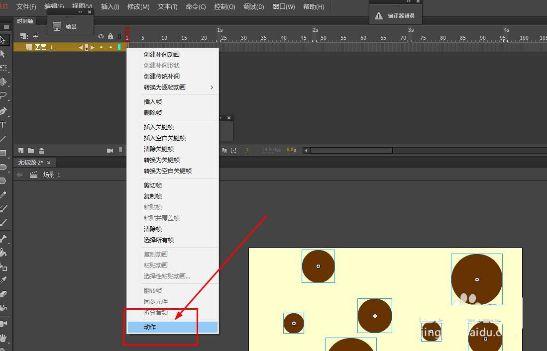 2、使用椭圆工具在舞台上绘制一些圆形,如图所示