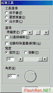7 在「沾水笔」中,选取其他的「宽度」和「角度」选项:
