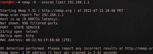上面的例子清楚地表明,Nmap的首次发现开放的端口,然后发送数据包发现远程操作系统。操作系统检测参数是O(大写O)