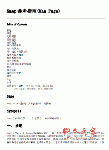 如果你是有经验的用户,可以略过结尾的示例一节。可以使用nmap -h快速列出功能选项的列表。