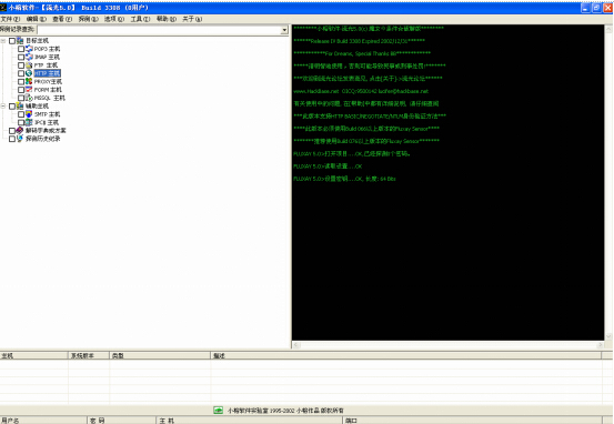 2、安装完成后,我们按照它的提示进如主程序页面,在页面中我们在任务栏可以看到很多的服务,在开始总,我们输入扫描的网段就可以看到很多的SA弱口令,或者是FTP弱口令,或者是进行IPC的空连接