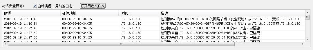 启用此功能后,系统可以详细记录各种网络安全日志,自动滚动更新显示100条日志。同时,系统每天都会创建一个日志文件,可以点击“打开日志文件夹”查看历史记录。系统也会自动清理一周前的日志,便于节省磁盘空间。