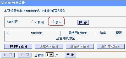 注意:默认情况下ARP绑定功能是关闭,请选中启用后,点击保存来启用。