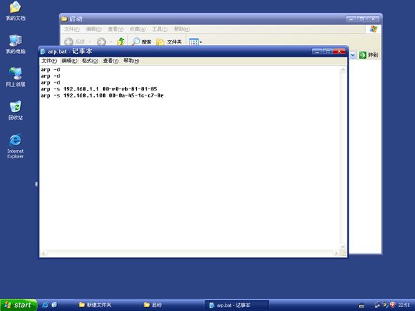 4. 编写完以后,点击“文件” →“另存为”。注意文件名一定要是*.bat 如arp.bat 保存类型注意要选择所有类型。点击保存就可以了。最后删除之前创建的“新建文本文档”就可以。