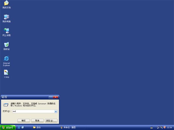 点击“开始”→“运行”。在打开中输入cmd
