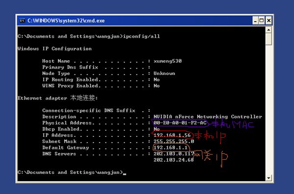 如何查看本的IP与MAC以及网关的IP与MAC