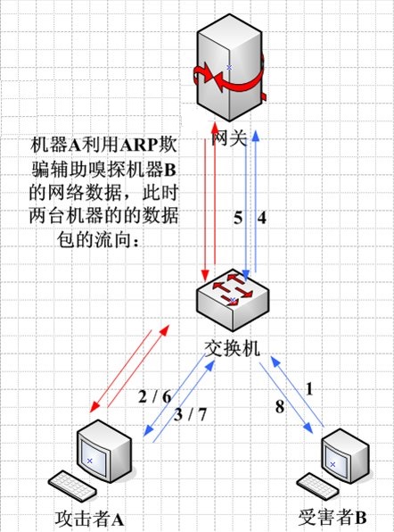 你什么事情都不用干,集线器自动会把别人的数据包往你机器上发。但是那个年代已经过去了,现在交换机已经代替集线器成为组建局域网的重要设备,而交换机不会再把不属于你的包转发给你,你也不能再轻易地监听别人的信息了,注意,只是不再轻易地,不是不行!呵呵,要在交换机网络下做嗅探还是有方法的,接下来为大家介绍交换机网络嗅探方法中用ARP欺骗辅助嗅探。