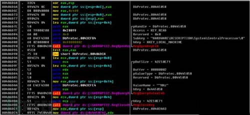 通过对程序逆向分析,发现程序运行后会获取主机的信息(系统版本、CPU架构,网卡信息,MAC地址),如图4、5、6、7所示: