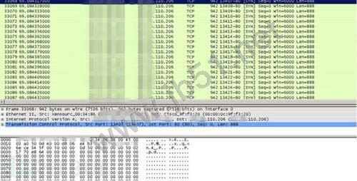 由于后面实际打DDoS攻击使用的是自带驱动Winpcap直接操作网卡来进行发包,因而OllyDbg截获不了所发的封包,但是可以通过Wireshark抓包软件来捕获,如图10所示。