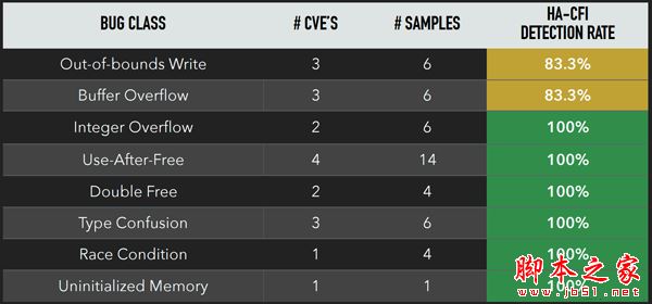 Cody Pierce等人选取了多个经典的CVE漏洞,与EMET进行了比较: