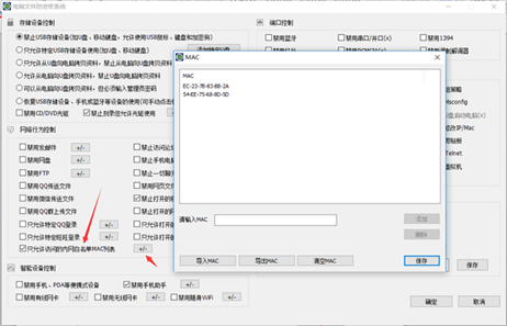 13、内网MAC白名单,禁止外部电脑以网线直连的方式拷贝文件。