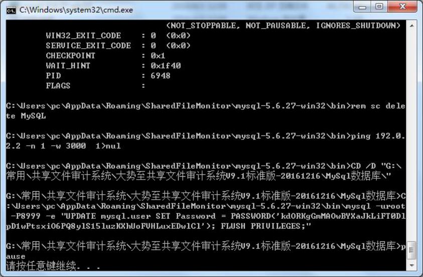大势至共享文件管理系统恰好可以解决这个问题,下面就来介绍一下这款软件的使用方法。首先到官网下载软件:http://grabsun.com/gongxiangwenjianshenji.html,要查看访问日志需要安装数据库:打开MySQL数据库,直接双击“Install”开始安装,直到出现“请按任意键继续”表示安装成功,如下图所示。