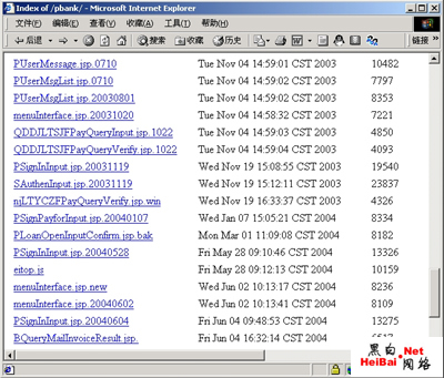 一些很典型的JSP文件和JS文件都列出来了。大喜之下,随便选择一个文件,点击右键,然后,选择“用FlashGet下载全部链接”选项,于是,这个目录下的所有文件都被我下载到了本地。