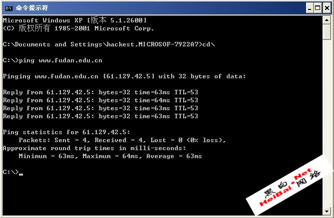 。PHP的程序,打开了个链接,顺手加个单撇号,提示"警告!提交的数据非法!",又试了几个其他的注入关键字,都被过滤掉了。看来直接从主站下手难度比较大,所以我们得想点其他办法。这里我打算利用嗅探来获取目标站的重要信息,嘿嘿。我们都知道可以根据ping一个目标地址的TTL值来大致判断对方的服务器操作系统!我ping了一下复旦主站,发现TTL值为53,