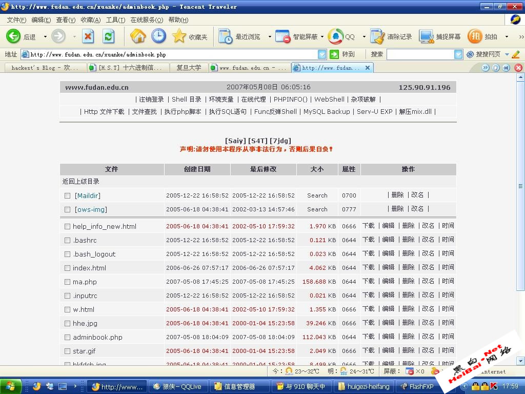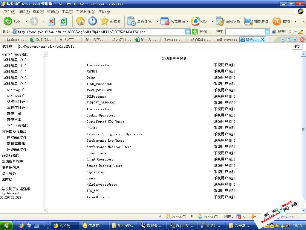 某日十分无聊,就和X论坛的超级版主wyzhack瞎吹牛,东年西扯的。后来不知道怎么的扯到复旦去了,他提议说不如我们黑掉复旦吧。正好当时也比较清闲,就答应一起看看了,嘿嘿。这次跑去黑复旦纯粹是为了练习技术。