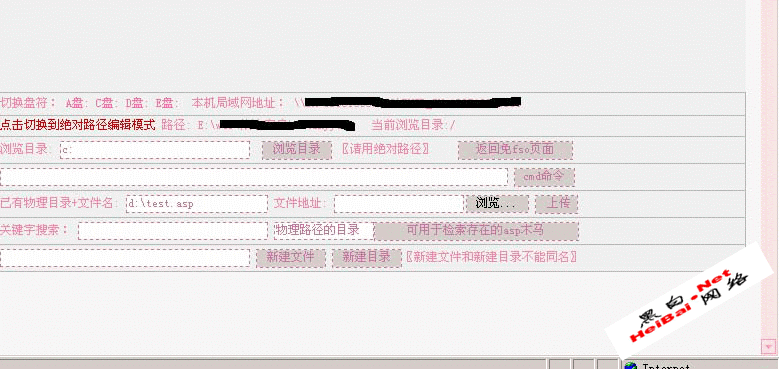 先来看看他服务器上绑定了多少域名,然后找一个存在注入的网站上传WEBSHELL。既然这样,就请出桂林老兵的虚拟主机站点查询工具,在里面输入服务器的IP,然后点击"域名数量"按扭,不一会儿结果就出来了(如图2),晕,就8个国际域名,看来那些试用空间的二级域名显示不出来,管他呢,一个一个的找,于是随便打开了一个网页,一看下了我一跳,用的是DVBBS7.0,连SP2都没打,也没有进行美化,嘻嘻,看样子是一个空间用户正在测试空间,所以随便上传了一个DVBBS,看看他把默认密码和用户改了没有,在用户名里输入admin,密码为admin888,然后登陆,哈哈,没想到真的进来了,看看后台密码改了没,输入_index.asp" target=_blank>http://www.xxxxxx.com/bbs/admin_index.asp,用户再次输入admin,密码还是admin888,最后输入附加码后点击登录,没想到大失所望(如图3),可能是把admin后台密码改了或删掉了admin用户的管理员权限,看来只有通过DVBBS的漏洞得到WEBSHELL了,嘻嘻,他没打SP2,应该没有补DVBBS那些知名BUG,为了方便,我就用DVBBS的上传漏洞试试,上传一个WEBSHELL来,在这里我使用的是桂林老兵的漏洞利用工具,在提交地址里填上upfile.asp这个文件的地址,一般在/upfile.asp,上传路径里可以把默认上传的文件名改一下,如果服务器用的是IIS5.0,协议版本里就选择"http/1.0",如果是IIS6.0,就选择"http/1.1",点击"浏览"按扭找到自己要上传的文件,其它的都不用改,然后点击上传文件按扭,哈哈,真的成功了(如图4),可是高兴的太早了,在WEBSHELL里根本什么命令都用不了,难道是不支持FSO?不可能啊,论坛可以使用,怎么会不支持FSO呢,看来一定是配置了BT的权限,WEBSHELL功能实在是太小,还是上传一个海洋ASP木马看看,不上传还好,上传上去下了我一跳,在免FSO页面里打什么命令都没反应,这还不止,进了FSO支持页面里连本目录的东西都看不到(如图5),C、D、E盘都不能访问。我真的有点怀疑空间到底支持不支持FSO组件,别说是跨站入侵,就连想改自己虚拟目录里的东西都不容易(因为看不到目录里的文件和路径),看来真的是没什么希望了,只能说空间商太BT,说实话,在国内这样的服务器还真的少见。就这样放弃?觉得有点不甘心,再这样继续渗透?怎么搞的下去?一看表,马上就要到12点了,因为学校一到12点就会对寝室限电,只能开一盏日光灯,我可不想把CPU烧掉,这样不是赔了夫人又折兵?还是等明天再说吧,于是关电脑睡觉了,那天晚上做了个好梦,梦到拿掉了服务器了最高权限^_^,所以第二天一大早起来就觉得很有信心,感觉可以突破权限。先开机,上QQ,在我QQ的一个群接收到一个ASP木马,发现是Asp站长助手6.0,又是桂林老兵作品,当时突然在想,海洋ASP木马不行,上传Asp站长助手6.0也许会好一点,于是就抱着试一试的想法上传了Asp站长助手6.0,没想到的确比海洋ASP木马好一些,起码可以看到本目录下的文件和目录,试试有没有删除本虚拟目录里文件的权限(如图6),真晕死,没有删除权限,经过我测试只能添加文件和修改文件,而且只能在自己的虚拟目录里活动,比如我现在所在的虚拟目录的路径是e:\web\aaa里,你只能访问aaa目录里的文件,连浏览web目录的权限都没有,这还不止,在自己的虚拟目录里连执行权限都没有,也就是说不能用WEBSHELL执行所上传的文件,这样就算在自己虚拟目录里上传了本地溢出程序也不能执行。