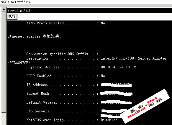 没想到IIS权限配置的这么BT,现在唯一的方法就是找一个能执行的目录,还能写入文件,可是权限配置的这么BT,要找到这样的目录真的很困难,也许都没有,不过一般C:\winnt我想应该能进入,浏览里面的目录和文件,因为IIS5.0的Internet 来宾帐户一般都是GUESTS权限,而WINNT目录都给予GUESTS权限读取、运行和列出文件夹目录,就是不能写入,如果WINNT目录不给予这样的权限,可以系统里的一些服务就不能正常运行,所以还是在c:\winnt里找找突破点,也就是可能存在可以写入的目录,先试试可不可以读取文件,在Asp站长助手的"地址栏"里输入"c:\winnt"(如图7)看到了吧,果然能浏览文件和文件夹,就是不能写入文件,现在就要找到一个能写入和能执行的目录,然后上传一个本地溢出程序,进行本地溢出得到管理员权限。不过WINNT目录里有这么多文件夹,怎么找?如果一个一个的找,要找到什么时候?于是经过一阵沉思,突然想到,IIS的那个文件夹,也就是在c:\winnt\system32\inetsrv目录里会不会有这样的目录?因为IIS的Internet 来宾帐户很可能要调用inetsrv目录里的一些文件,或是加载文件,而这就要求必须有写权限,于是马上进入c:\winnt\system32\inetsrv目录里,发现里面有一个DATA目录,于是试着在里面建一个文件,在ASP站长助手里点击左边的那个"新建文本",随便建一个文件试试,哈哈,没想到真的成功了(如图8),我在里面建了一个serv.txt的文本文件,看来能写入,不知道能不能执行,于是马上把cmd.exe上传到c:\winnt\system32\inetsrv\data目录里,再点击左边的"命令行模块",在最下面的"SHELL路径:"下填写c:\winnt\system32\inetsrv\data\cmd.exe,因为我在data目录里上传了一个cmd.exe,就以data下的cmd.exe运行,而c:\winnt\system32\的cmd.exe没有执行权限,BT空间商把来宾用户的权限取消了,填写好后在"执行"按扭上面输入ipconfig /all命令,主要是看看能不能执行(如图9),哈哈,真的成功了,突然发现胜利的曙光在眼前一闪^_^。