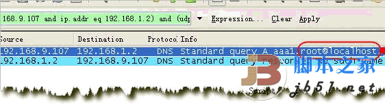 29 28.524843 192.168.9.107 192.168.1.2 DNS Standard query A aaa1.root@localhost.oldjun.com